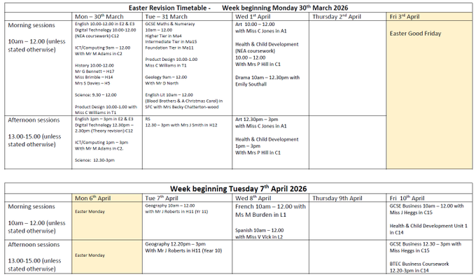 Easter Revision Timetable ๐๐๏ธโ๏ธ Posted on 10th March 202610th March 2026 by websupport@prestatynhigh.co.uk Posted in News.