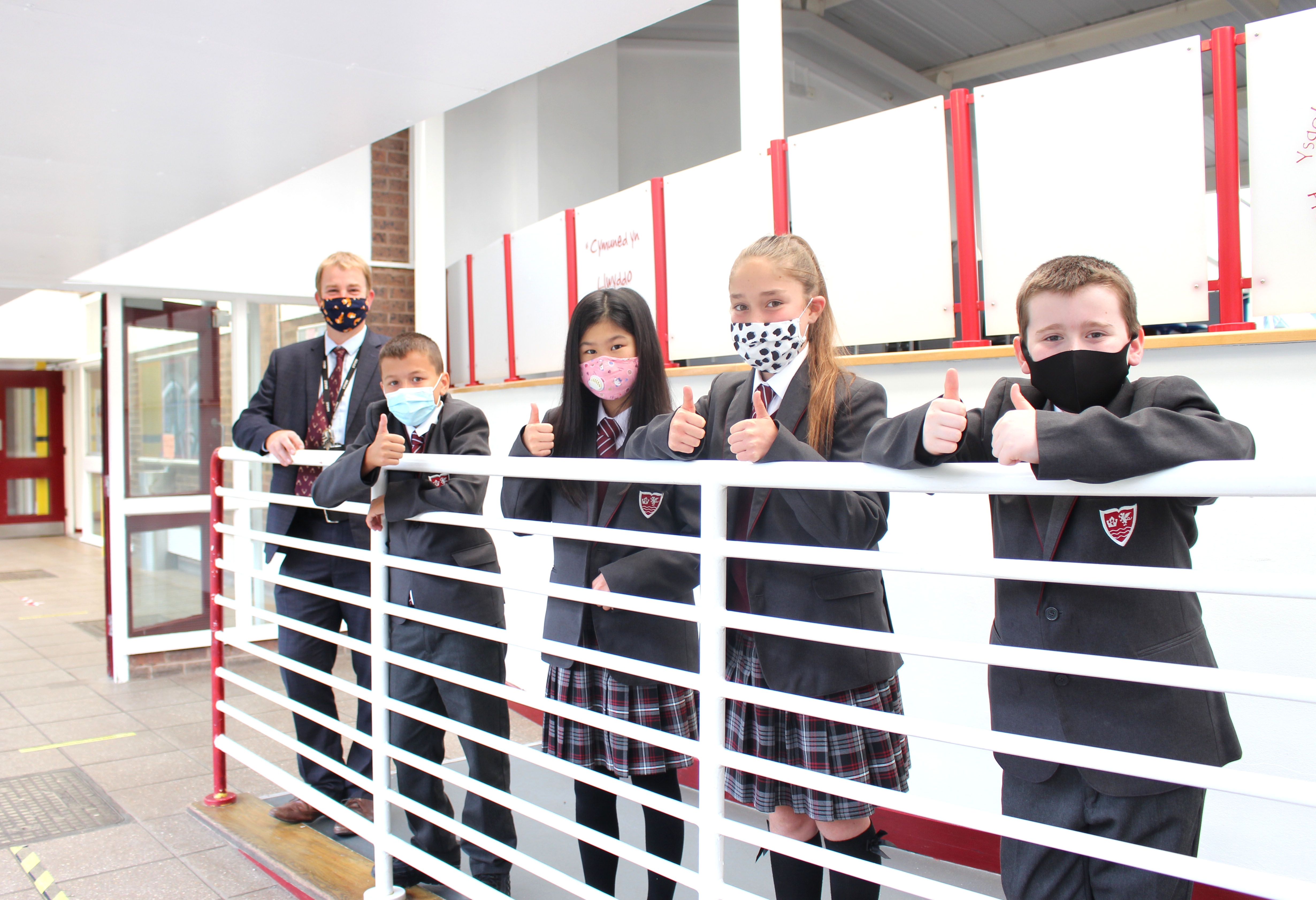 “In light of the recent announcement, and advice received by the Welsh Government Chief Medical Officer, we strongly recommend the use of face coverings where social distancing cannot be maintained in communal areas in secondary schools. Students/pupils and staff will need to wear a face covering when moving through shared indoor areas of the school where it is difficult to adhere to social distancing measures. This includes corridors, stairways and as previously stated on designated home to school transport. Face coverings will not be required outside or in classrooms.”